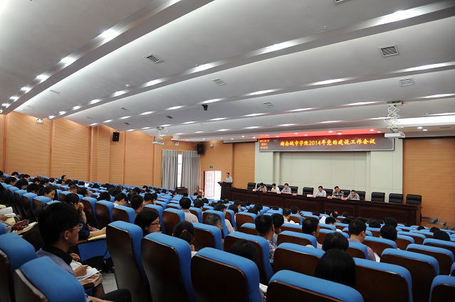 (本网讯)610日下午,学校在图书馆报告厅召开2014年党建工作会议。校领导赵运林、李建华、龚卫明、严曙光、丁亮中、郑卫民、曹太康以及全校副处以上干部、各党总支及直属支部委员、学生党支部书记代表等出席。会议由校长李建华主持。