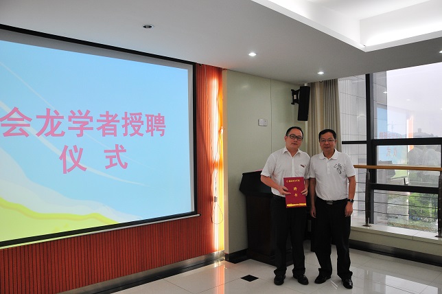 首批会龙学者代表杨小平和褚玉明教授在会上分别讲了话,介绍了他们担任会龙学者两年来的工作情况和感受。