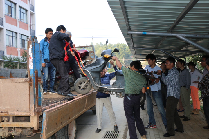 丁亮中一行先后对学生公寓和各教学楼的摩托车停放现象进行了排查,将违规停放的摩托车进行了拍照、贴封条,并集中拖运至保卫处封存