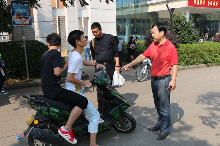 (本网讯)为了整治校内交通环境,确保校内交通安全、畅通,10 21 ,副校长丁亮中与学生处、保卫处、武装部及各二级学院相关负责人一同在全校范围内开展了校园“禁摩”专项检查整治行动。