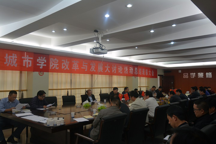 (本网讯) 1027下午,学校在办公楼三楼一会议室召开了改革与发展大讨论活动总结表彰大会。校领导李建华、龚卫明、孟昭武、严曙光、汤放华、刘辉煌,以及各二级学院、机关处室相关负责人出席会议。