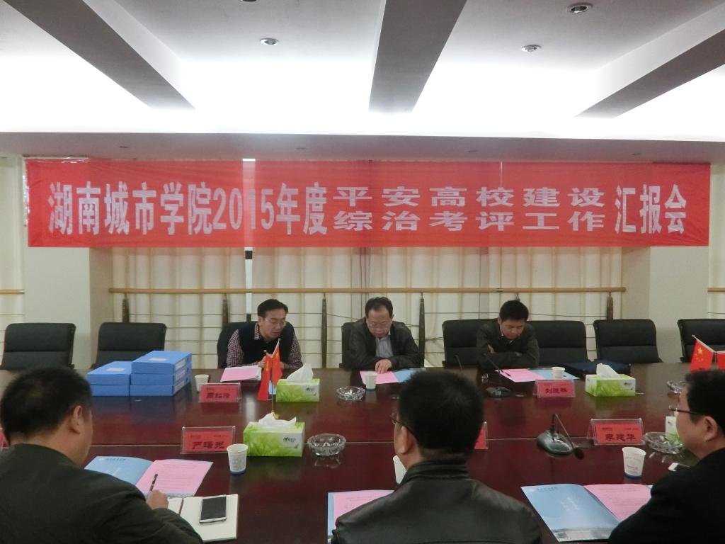 校长李建奇向考评组详细汇报了米兰官方网站2015年度“平安高校”建设及综合治理工作,以及学校在维稳综治安全工作中的做法和措施。他在汇报中着重指出,2015年学校维稳综治安全工作主要以“平安高校”建设为载体,以创新工作方式为手段,专注做好维稳、消防、治安等基础工作。与此同时,学校还深入开展了突发事件处置、校园传销整顿、校园交通整治等重点工作,为学校创造良好的育人环境,也为教育事业的持续健康发展提供了保障。