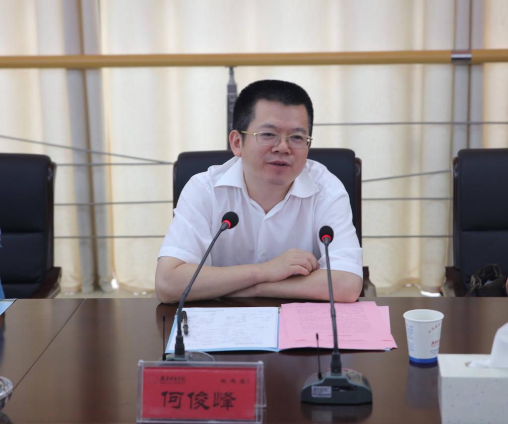 随后,双方在办公楼一会议室召开座谈会。雷存喜代表学校对何俊峰一行的到来表示热烈欢迎,并简要介绍了我校的基本情况、办学特色。应用与创新管理中心负责人吴宏斌介绍了我校创新创业开展情况。