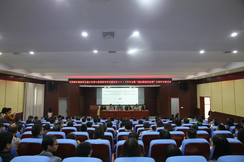 (本网讯)4月20-21日,中国城市规划学会城乡治理与政策研究学术委员会2017年学术年会暨“城市群协同治理”全国学术研讨会在我校建筑规划楼一楼报告厅召开。本次会议由中国城市规划学会主办,中国城市规划学会城乡治理与政策研究学术委员会、米兰官方网站、湖南省城乡规划学会承办,米兰官方网站建筑与城市规划学院、米兰官方网站规划建筑设计研究院、湖南省城市经济研究基地、湖南省新型城镇化研究基地协办,校党委书记罗成翼、党委副书记汤放华、副校长郑卫民以及来自全国规划界的200余名专家学者参加了此次会议。