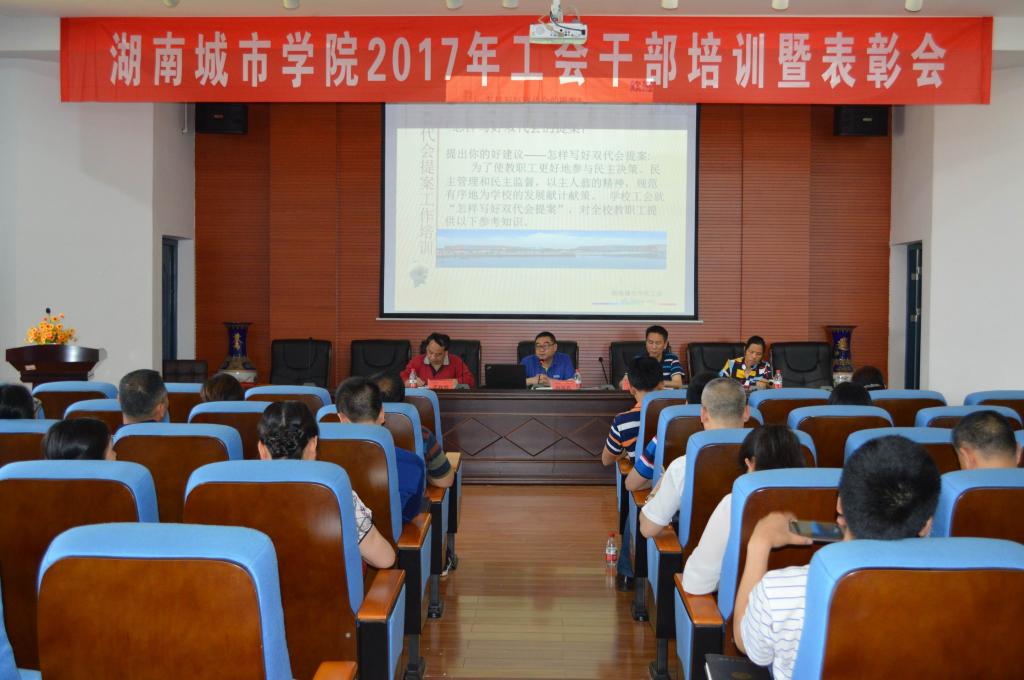 (本网讯)5月12日下午,我校2017年工会干部培训暨表彰会在土木楼828召开,副校长、工会主席郑卫民,工会三个委员会委员、专干、分工会主席及委员、各协会正副会长等40余人参加了会议。