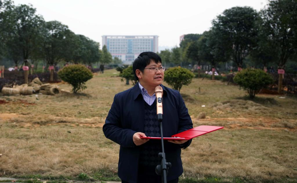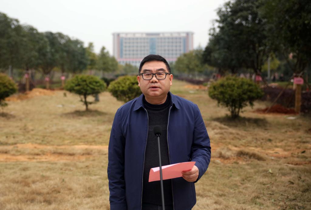 李志学代表规划建筑设计研究院分工会作了发言,表示设计院全院员工为校园建设贡献出自己的一份绵薄之力,既是一份责任担当,也是一份幸福与快乐。基建与后勤管理处处长曹友余就现场植树工作进行了具体安排。