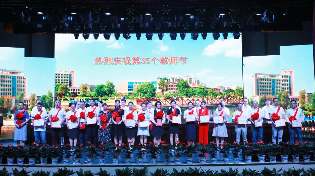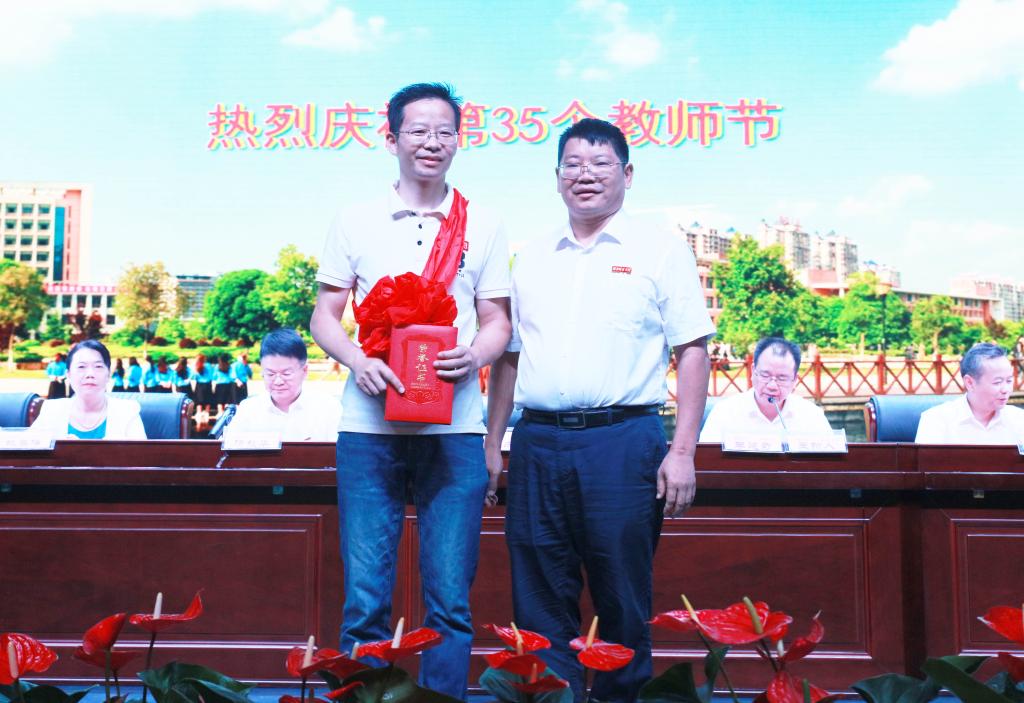 全体校领导为获奖教师颁发了荣誉证书。匡列辉、陈国民作为获奖代表先后发言。