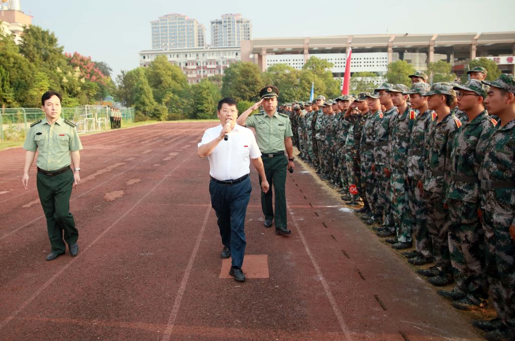 大会在庄严、雄壮的国歌和校歌声中拉开帷幕。党委书记罗成翼检阅了由2019级参训新生组成的方队。