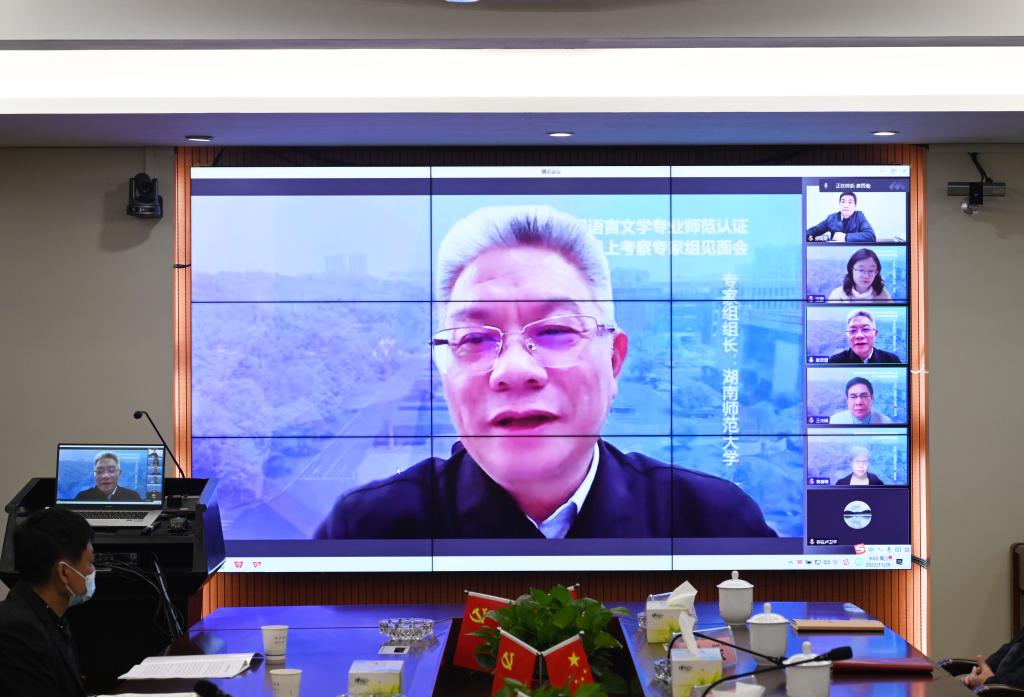 会上,唐贤清介绍了专家组线上考查的工作任务、方法及要求。他表示,开展师范认证,是新时代全面深化教师教育改革、做优做强教师教育、从源头上培养高素质专业化创新型教师队伍的重要举措,是全面贯彻全国教育大会精神、强化人才培养中心地位、推动教师教育改革、构建中国特色和世界水平的教师教育质量监测认证体系、全面提高师范专业人才培养质量的重要工作抓手。要明确师范类专业认证的“三理念”(学生中心、产出导向、持续改进)“三任务”(以评促建、以评促改、以评促强)“三提高”(提高专业人才培养力、提高课堂教学质量、提高质量保障力度)。专家组将尊重标准,遵循规范,按照专业认证的新思路、新理念、新标准、新方法和新技术要求,与学校加强沟通交流,高质量完成此次认证工作。
