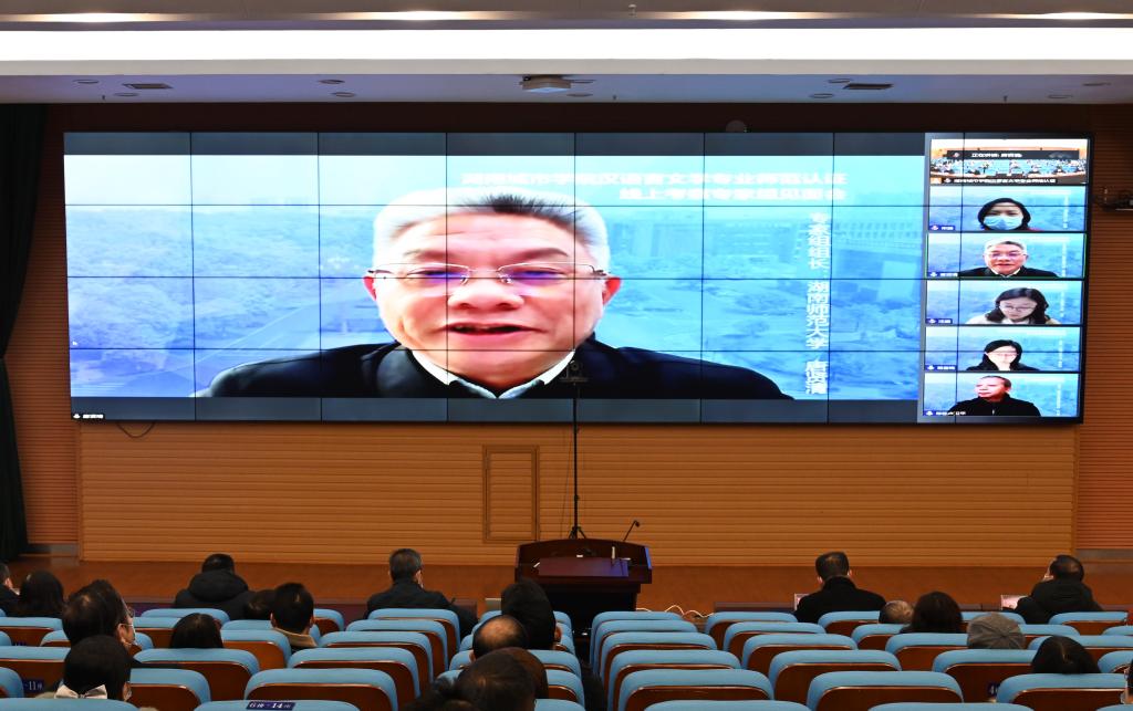 本网讯(记者 文彦波)12月1日,我校在图书馆报告厅召开教育部汉语言文学专业第二级认证线上考查专家意见反馈会。专家组全体成员,校党委书记李建奇,副校长夏宏宇、雷存喜、袁志成,党委委员、组织部部长吕贤军等出席会议。会议由专家组组长唐贤清主持。