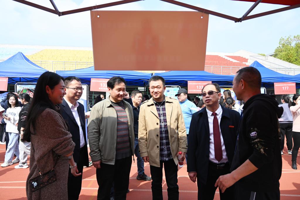何振代表学校致辞。他表示,此次春季综合大型双选会,是扎实做好“六稳”工作,着力落实“六保”任务,积极推进就业创业“一把手工程”的有力举措。希望各位毕业生认清形势、转变观念、调整心态、把握机遇,加倍珍惜招聘单位提供的就业机会。希望各位企业负责人对毕业生多一些指导和关爱,为学生提供更加优质的就业平台。学校将加大投入,充分发挥常态作用,切实把益阳片区市场建设成为线上线下相结合、学生就业创业的可靠平台,积极带动益阳地区高校毕业生高质量充分就业。
