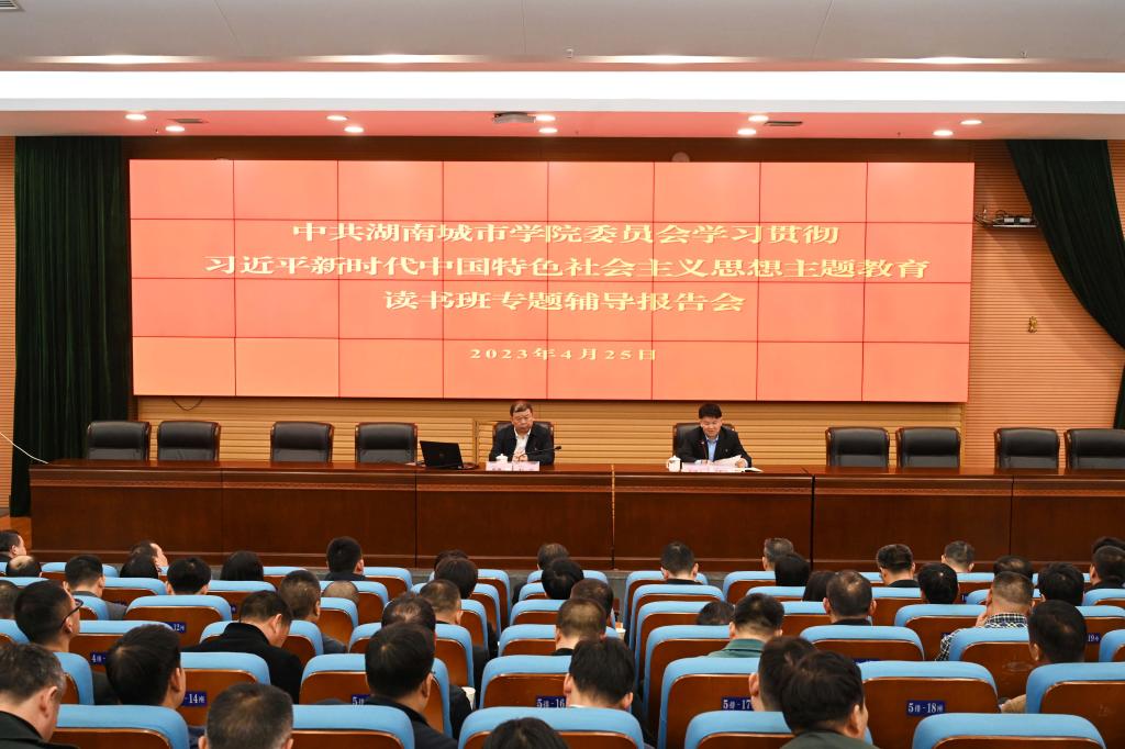 本网讯(记者 文彦波)4月25日晚,米兰官方网站学习贯彻习近平新时代中国特色社会主义思想主题教育读书班在图书馆报告厅开班。湖南工业大学党委书记刘望应邀作专题辅导报告。学校党委书记汤放华主持报告会并作动员讲话。学校副处级以上领导干部参加读书班。