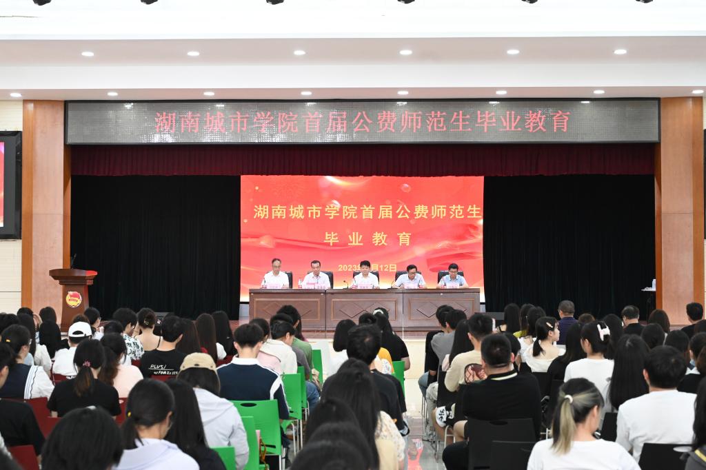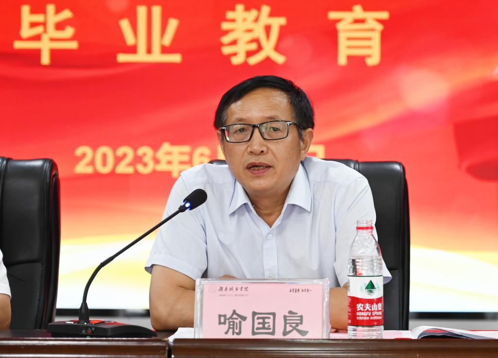 喻国良代表益阳市政府向2023届公费师范毕业生表示热烈祝贺。他指出,乡村教师是乡村教育之本,是推动乡村教育高质量发展的基石,也是推动乡村振兴的重要力量。培养公费师范生是拓宽乡村义务教育优秀教师来源的重要渠道。首届公费师范毕业生承载着益阳市政府的殷切希望,希望大家在教师岗位上努力做到四个“坚守”:坚守责任,做勇担使命的人民教育家;坚守乡村,做潜心施教的“大先生”;坚守师德,做立德树人的灵魂工程师;坚守情怀,做心怀大爱的成长引路人。