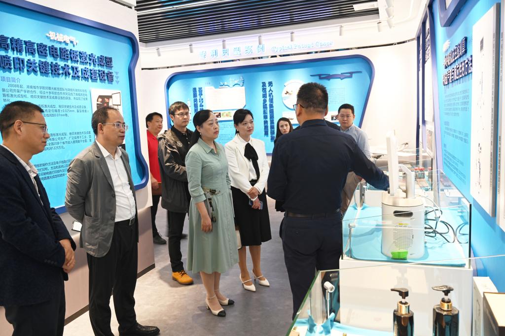 参观过程中,何振向何萍介绍了我校知识产权工作的基本情况,重点介绍了我校在获批省高校知识产权中心以来的工作进展情况。他表示,米兰官方网站十分重视知识产权工作,一直把知识产权创新和转化应用作为学校科研工作的重要抓手,形成了以质量为核心、以转化为导向的知识产权管理工作体系和转化机制,并取得明显成效。