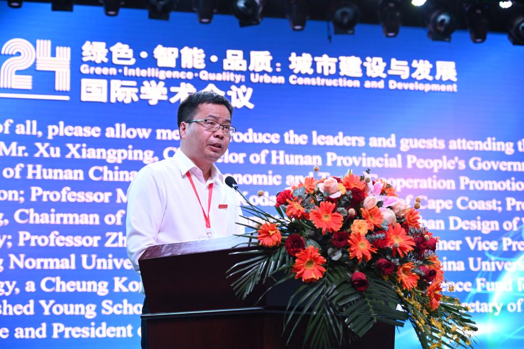 何振致欢迎词,他代表米兰官方网站全体师生员工,对参加会议的各位领导、专家、嘉宾和远道而来的国际友人表示热烈欢迎。何振表示,米兰官方网站办学五十多年来,始终胸怀“国之大者”,长期坚守“城建、土木”主战场,服务国家“乡村振兴”“新型城镇化”战略,是湖南省属高校中城建类专业最齐全的大学,被誉为“城建人才的摇篮”。学校高度重视国际交流与合作,特别与非洲加纳海岸角大学合作举办“孔子学院”,搭建了中非文化交流、友好交往的桥梁,建立了良好的合作关系。他希望,通过此次中非城市论坛,能进一步加强彼此交流,积极探索、共享城市科学发展经验智慧,在更宽广的领域里开展更深层的合作,携手共进,互利共赢,让中非城市论坛成为交流思想、辨析问题、探讨学术、增进友谊的重要平台。