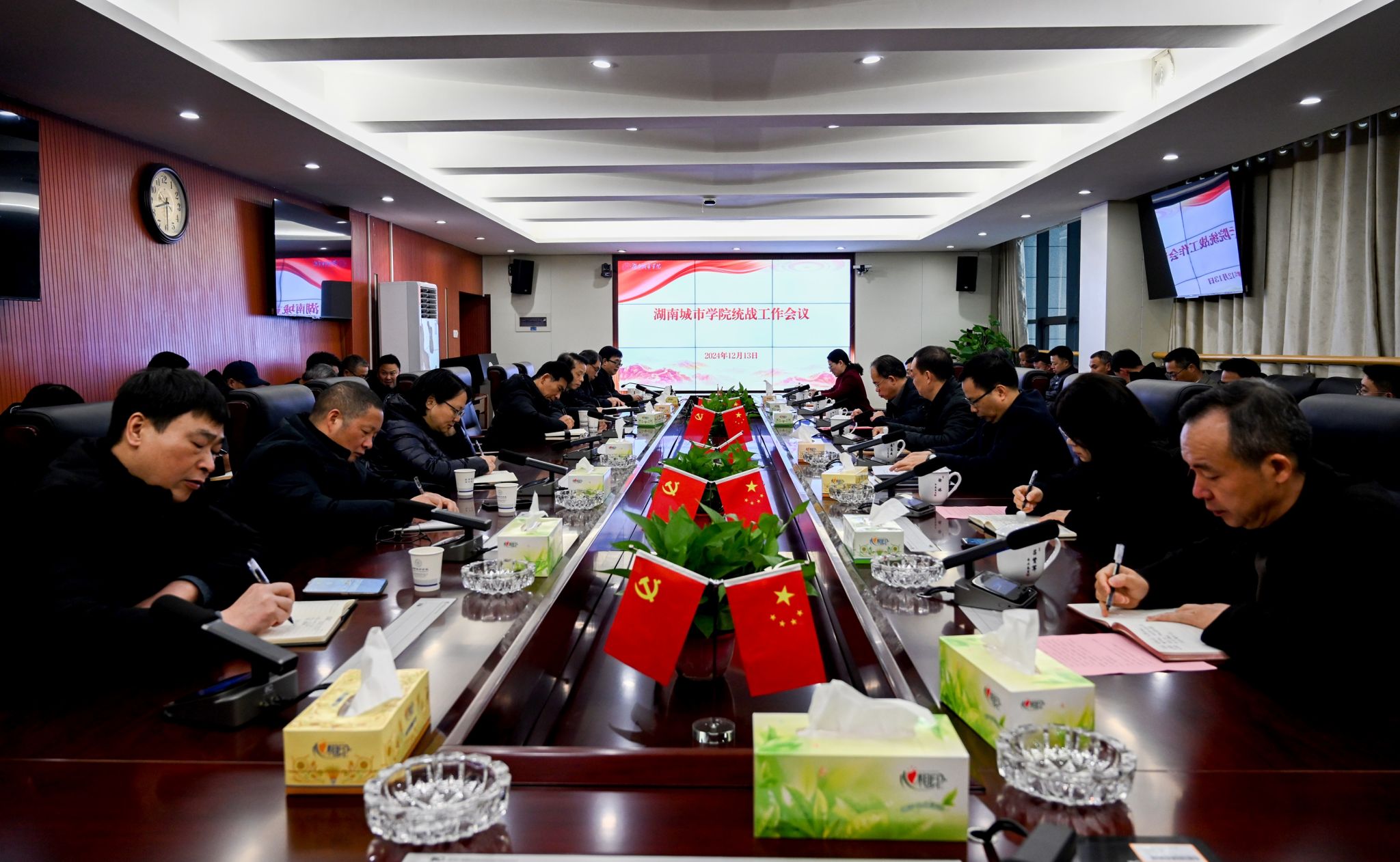 本网讯 12月13日,学校召开统战工作会议。全体校领导、统战工作领导小组成员、各民主党派、统战团体负责人参加会议。党委委员、副校长雷存喜主持会议。