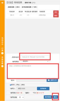 3、选中要借用的教室,在出现的左侧界面中填写联系电话,借用原因等信息,点击提交,等待教务处审核。