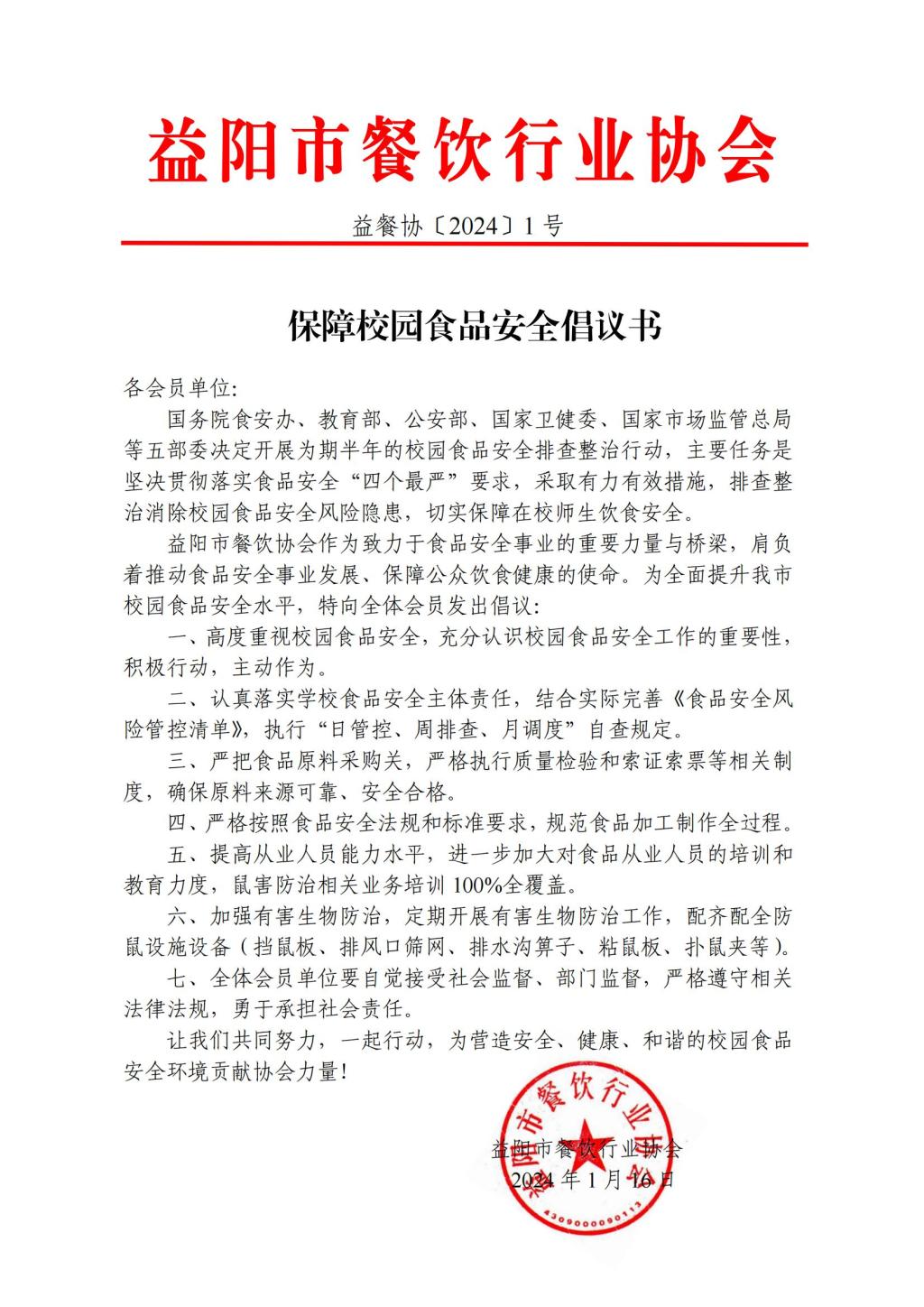 保障校园食品安全倡议书