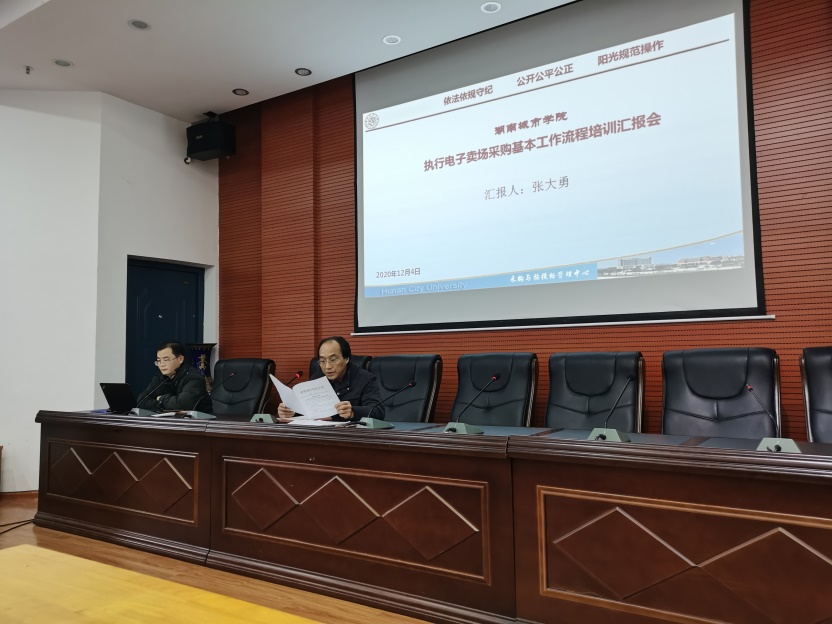 2020年12月04日15:00时,在土木楼828学术报告厅,采购与招投标管理中心主持召开“学校执行电子卖场采购工作流程操作”培训会。采购与招投标管理中心主任冷云飞组织学习了《米兰官方网站关于执行政府采购电子卖场的有关规定》(湘城院发[2020]66号)及相关要求和注意事项。培训会上,张大勇介绍了政府采购电子卖场的具体操作流程,王胜斌负责发放了全校各采购经办人和审核人岗位账号密码及负责会务事宜。